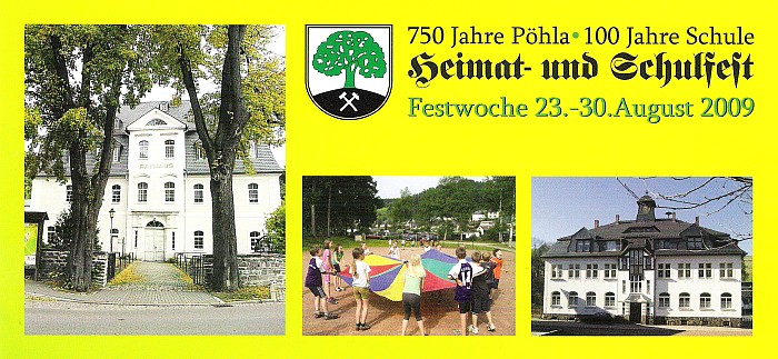 | Di 25.08.09 | Heimatabend mit Programm von Schule und Kindergarten | Mehrzweckhalle Pöhla |